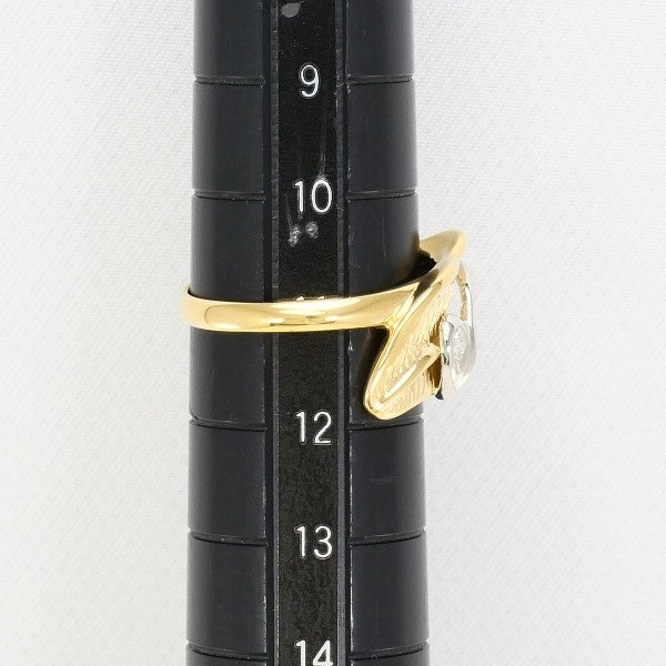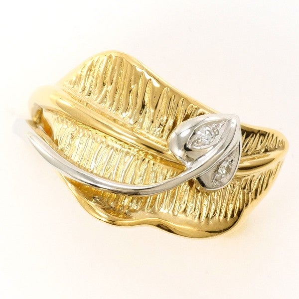 やわらかな葉のようにカーブを描くイエローゴールドに、たおやかに重なるプラチナのラインが特徴のリングです。中央には一粒の天然ダイヤモンドが静かに輝き、雫のように幻想的な存在感を放ちます。繊細ながらも芯のある美しさを宿した、気品漂うひと品です。