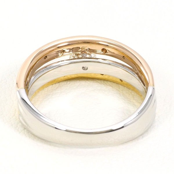 プラチナと2色のゴールドが織りなす洗練のハーモニー。中央に輝くラウンドブリリアントカットダイヤモンドが、気品と華やぎを添えます。繊細なデザインの中に力強さが宿る、個性と美しさを兼ね備えた逸品です。見るたびに心ときめく、大人のための特別なリングです。