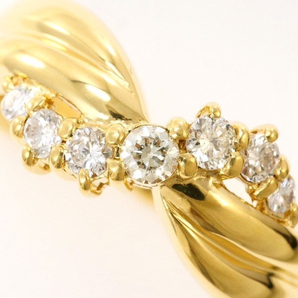 柔らかな曲線を描くゴールドのアームに、ダイヤモンドが絶妙に並べられたリングです。バランスの取れたデザインが、上品さと華やかさを自然に引き立てています。丁寧な仕上げによる光沢とダイヤの透明感が調和した逸品です。