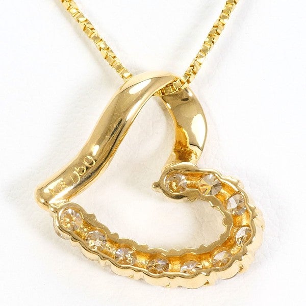 ゴールドのチェーンにダイヤモンドをあしらったハートモチーフのペンダントは、柔らかな曲線と輝きが調和し、上品で洗練された印象を与えます。繊細なチェーンの存在感がペンダントの輝きを一層際立たせ、胸元を華やかに演出します。