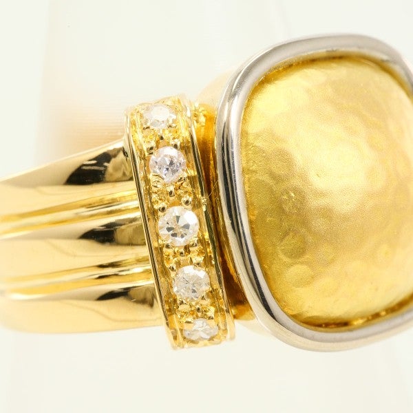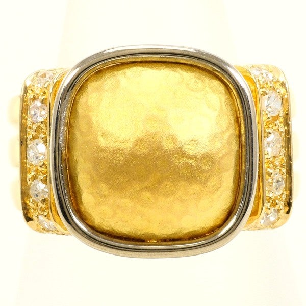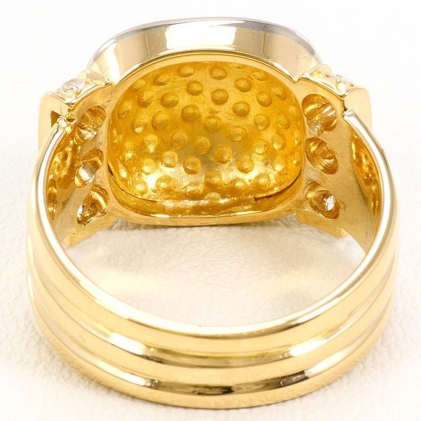 重厚感のあるデザインが印象的なリングで、中央には艶やかなゴールドのプレートが存在感を放っています。両サイドには天然ダイヤモンドがシングルカットで配置され、煌めきが全体の高級感を一層引き立てています。力強さと華やかさを兼ね備えたデザインは、特別な場面にも相応しい逸品です。