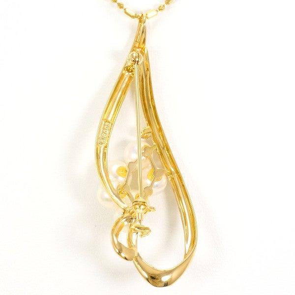 アコヤ真珠を配したペンダントは、ラウンドシェイプの真珠が美しい連なりを見せ、上品な印象を与えます。ゴールドの枠は流れるようなデザインで、真珠の輝きを一層引き立てています。さらに天然ダイヤモンドが添えられており、繊細な煌めきが全体の完成度を高めています。