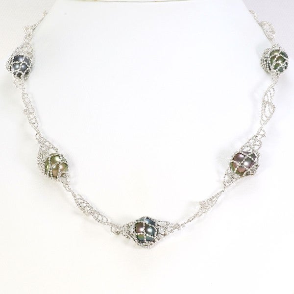 黒蝶真珠の深みある艶が印象的なネックレスです。オフラウンドの個性的なフォルムが一粒ごとに異なる表情を見せ、洗練された輝きを放っています。繊細なチェーンデザインが真珠の存在感を際立たせ、上質で優美な雰囲気を感じさせる美しい逸品です。