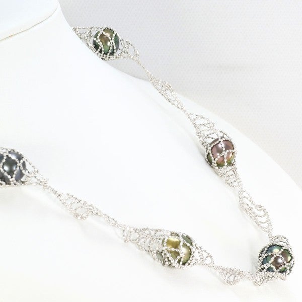 【10%OFF】K18 18金 WG ホワイトゴールド ネックレス 黒蝶真珠 カード鑑別書 総重量約17.1g 約47cm