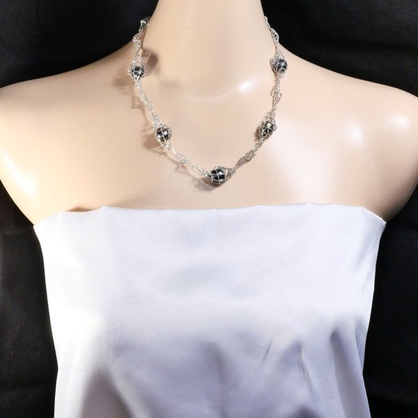 3. 【10%OFF】K18 18金 WG ホワイトゴールド ネックレス 黒蝶真珠 カード鑑別書 総重量約17.1g 約47cm