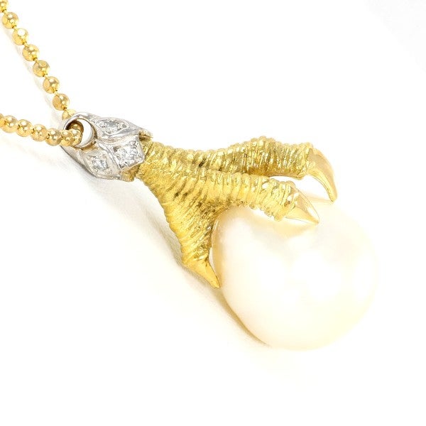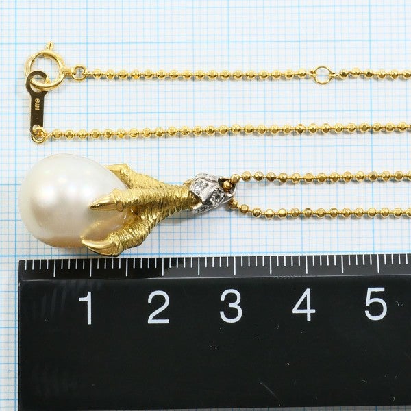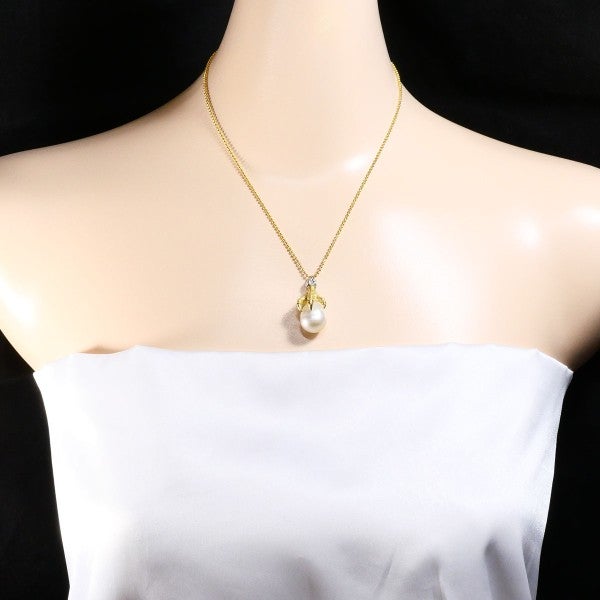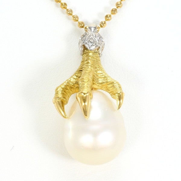 南洋真珠を用いたK18イエローゴールドのネックレスです。存在感のある大粒のオフラウンド真珠が柔らかく上品な光を放ち、バチカン部分には天然ダイヤモンドが煌めきを添えています。繊細なボールチェーンとの組み合わせが軽やかで、エレガントな印象を引き立てる逸品です。金種刻印(PT500)はありませんが、X線確認済みのお品です