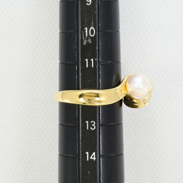 アコヤ真珠を中心に据えたK18イエローゴールドのエレガントなリングです。優しい光沢を放つセミラウンドシェイプの真珠が、上品な存在感を演出。アームにはダイヤモンドをあしらい、繊細な輝きがアクセントとなっています。気品とモダンさを兼ね備えた、美しく洗練されたデザインのジュエリーです。
