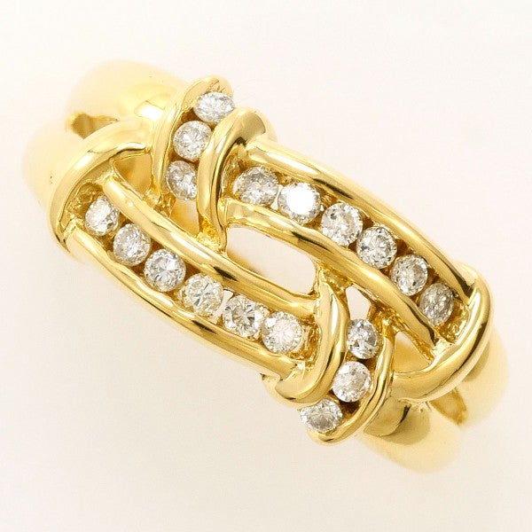 K18イエローゴールドに天然ダイヤモンド(0.25ct)を配した、上品で洗練されたリング。リンクモチーフのように絡み合うデザインが立体的な輝きを生み出し、指元に華やかさと高級感を添えます。日常にも特別な装いにも映える逸品です。