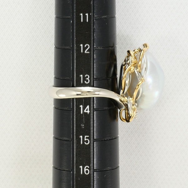 5. 【15%OFF】PT900 プラチナ K14YG リング 指輪 13.5号 南洋真珠 約16×12.5mm ダイヤ カード鑑別書 総重量約11.0g