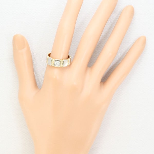 プラチナとゴールドのコントラストが美しく、1本で存在感があります。センターのダイヤモンドがしっかりとした光を捉え、周囲のメレダイヤと共に上品な輝きを演出しています。立体感のあるブロック調のフォルムが程よいボリュームを与え、クラシックさとモダンさが両立したリングとなっています。