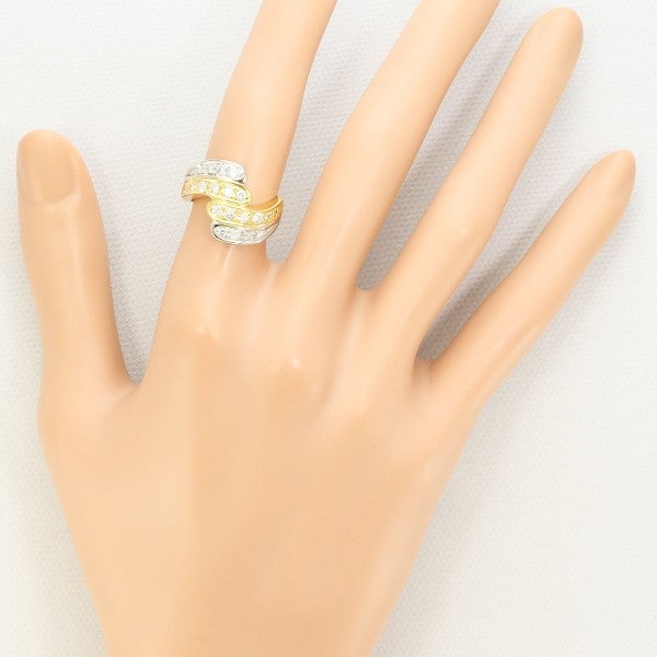 一対の羽が重なり合うような優しい曲線を描くコンビリングです。太すぎず華奢過ぎないリング幅ですが、トップが斜めに重なることで、指元全体から光を放つように輝きます。ダイヤの華やかな煌めきも相まって、柔らかい印象を演出してくれる一品です。