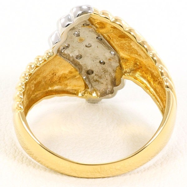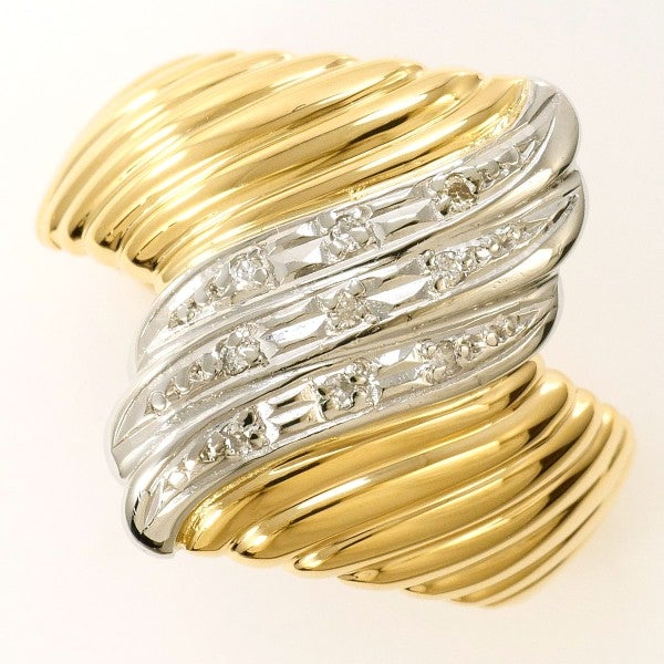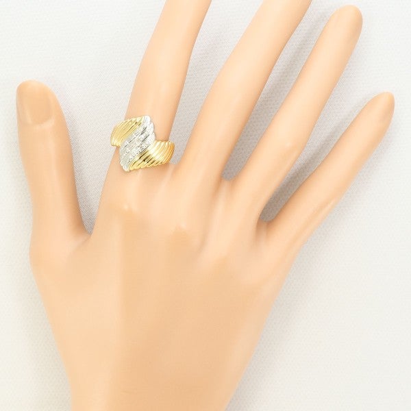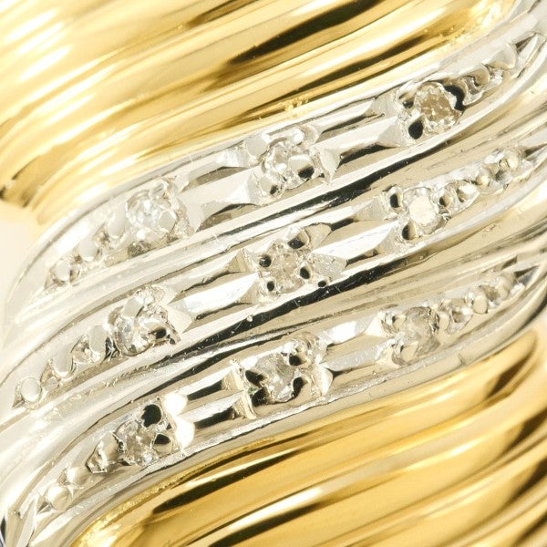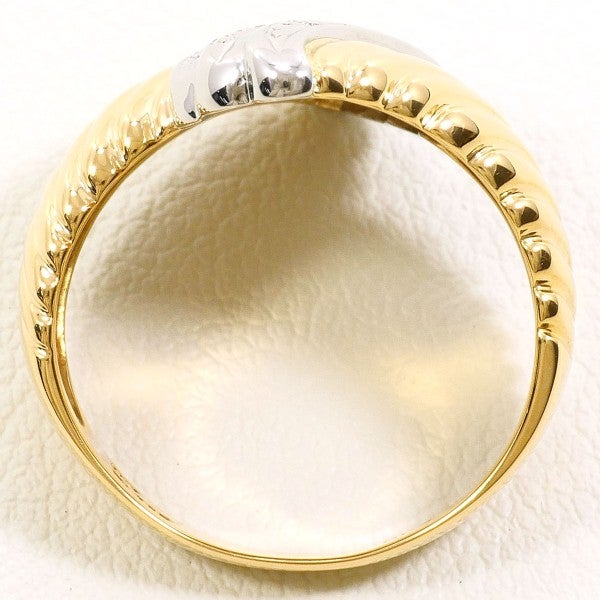 炎のような曲線と凹凸が重厚感あふれるコンビリングです。プラチナ部分にダイヤをあしらい、チラチラとした艶やかな輝きに目を惹かれます。見る角度によって変わる地金の光沢はまるで動いているようで、身に着ける人の個性を引き出してくれるお品となっています。