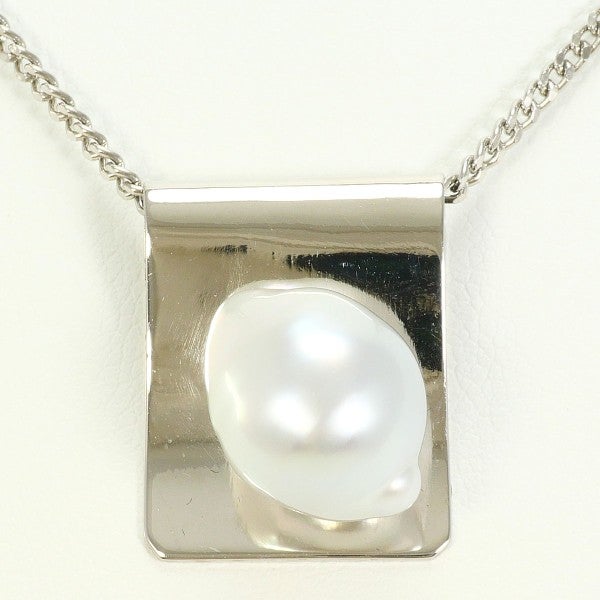プラチナの光沢に溶け込むようなシルバーみのあるパールの艶やかさに、遊び心のあるオフラウンドシェイプが魅力のネックレスです。パキッとした硬質な印象の中にもゆったりとしたパールの雰囲気が一層大人っぽい雰囲気をまとわせてくれるお品です。