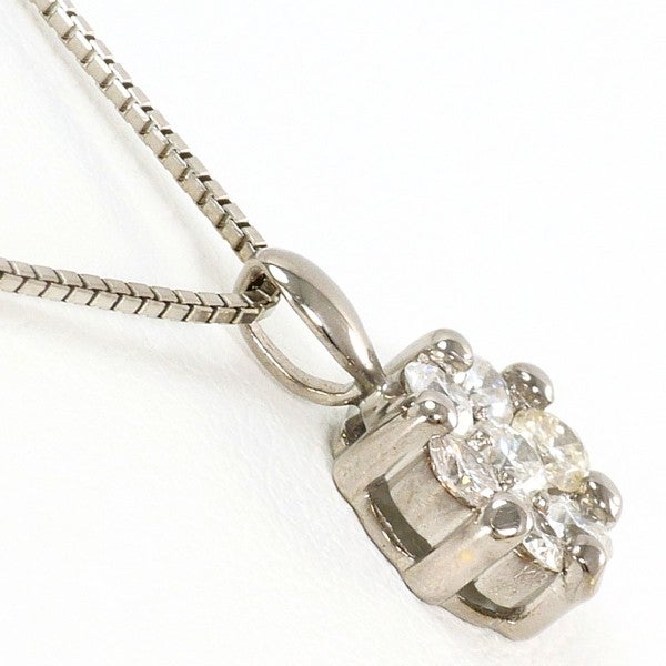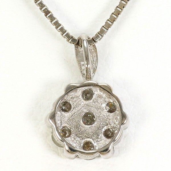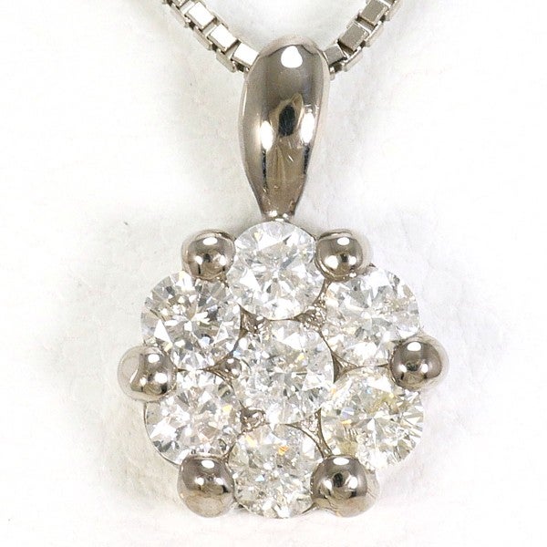 複数のラウンドカットのダイヤをバランスよく配置したデザインは、1石だけでは出せない立体感と輝きの広がりがあります。サイズ以上に華やかに見える輝きに目を引かれ、すっきりとしたベネチアンチェーンの繊細な輝きが全体を上品で洗練された印象にまとめています。