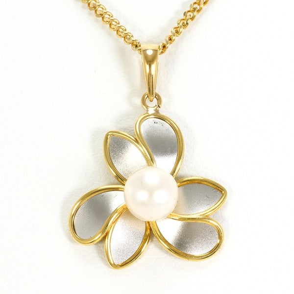 繊細な花をかたどったデザインは、華やかさがありながらも上品で、装いにさりげない女性らしさを添えます。温かみのあるゴールドカラーが真珠の美しさを引き立て、フォーマルからカジュアルまで活躍します。