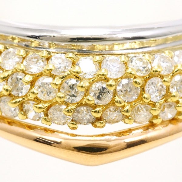コンビカラーが美しい地金ににダイヤモンドを贅沢に敷き詰めた、存在感のあるリング。立体的なラインが指元を美しく演出し、上質な輝きが大人の装いに華やかさと品格を添えます。日常使いから特別なシーンまで幅広く活躍する一品です。