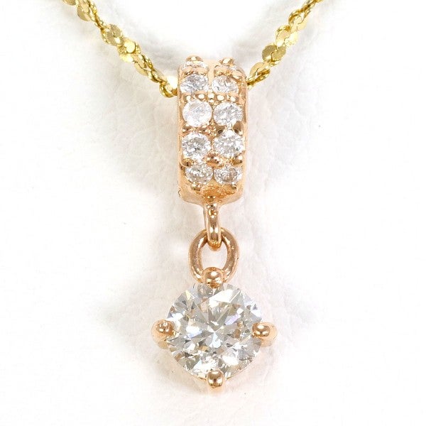 メインの0.30ctのダイヤが胸元でしっかりと輝きを感じられるサイズ感です。一粒ダイヤに加え、バチカン部分にあしらわれたダイヤモンドがアクセントになり、動きに合わせて繊細なきらめきを演出してくれるネックレスです。定番の一粒だけでは少し物足りない方におすすめのお品です。