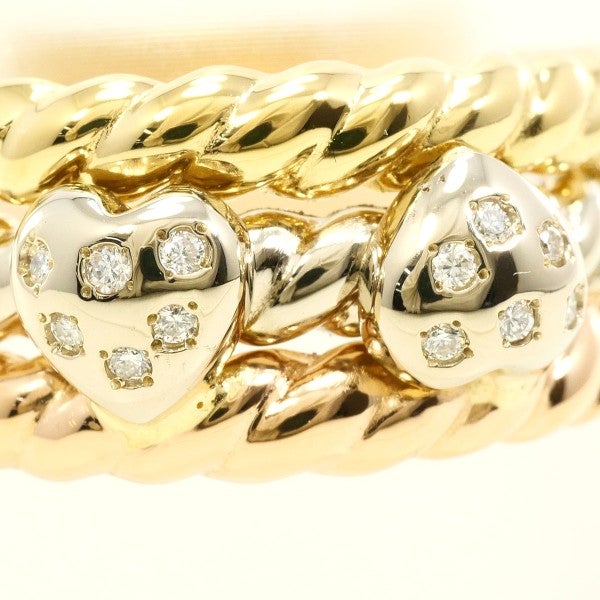 繊細なチェーンデザインにハートモチーフのダイヤモンドをあしらった、上質な輝きのゴールドリング。多層に重なるモチーフが指元に奥行きを添え、スタイルに洗練された表情を演出。上品さと遊び心を兼ね備えた一品です。