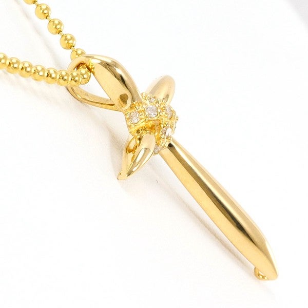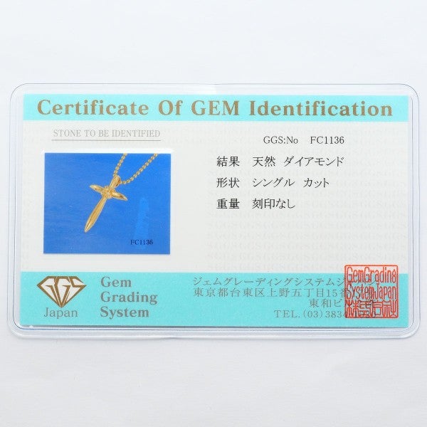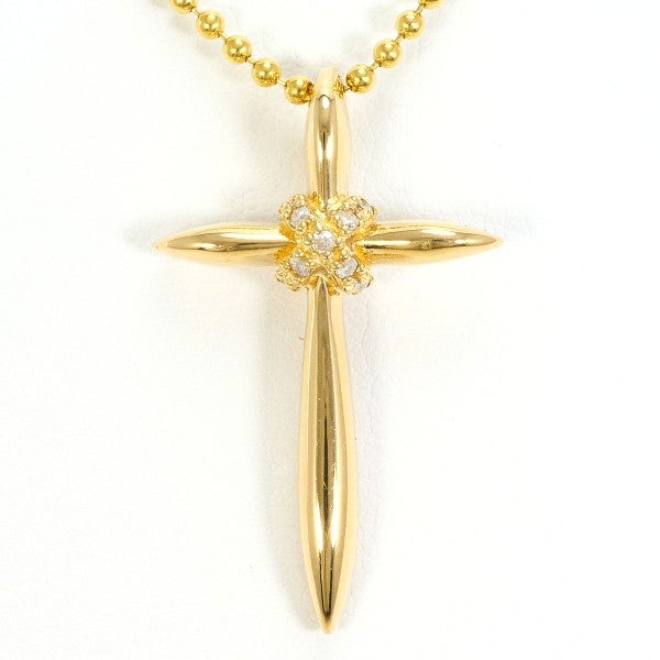 柔らかな光沢を湛えるイエローゴールドのクロスペンダントに、天然ダイヤモンドの輝きを一粒添えた一本。繊細なゴールドボールチェーンが胸元を上品に彩り、洗練された存在感を引き立てます。