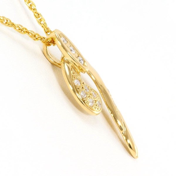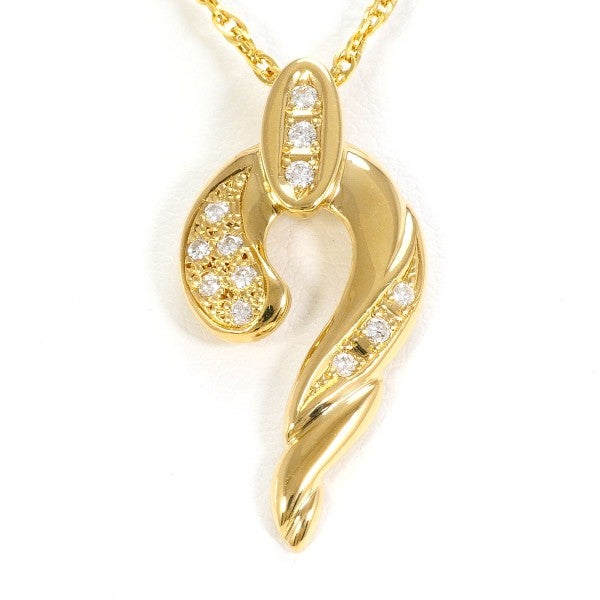 しなやかな曲線美が際立つK18イエローゴールドのペンダント。計0.12ctの天然ダイヤモンドが角度ごとに精緻な煌めきを放ち、胸元に気品ある存在感を添えます。エレガントなラインと温かみのあるゴールドが調和した、洗練されたラグジュアリースタイルに最適な一品です。