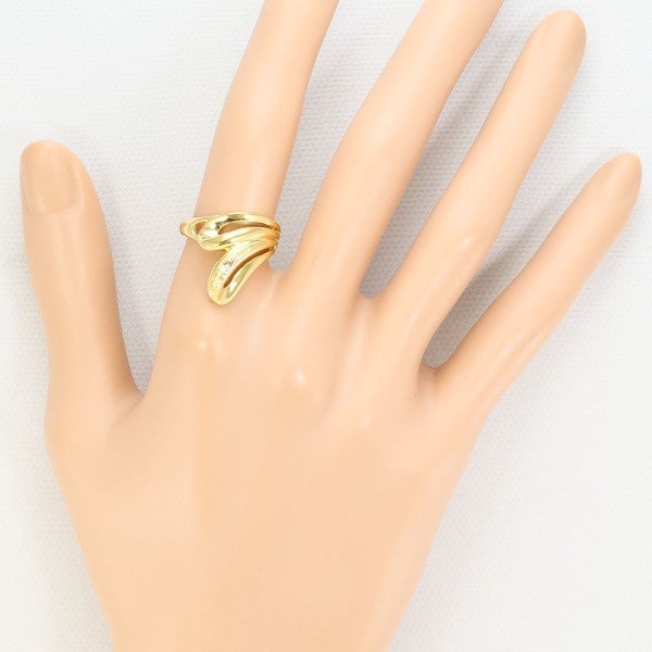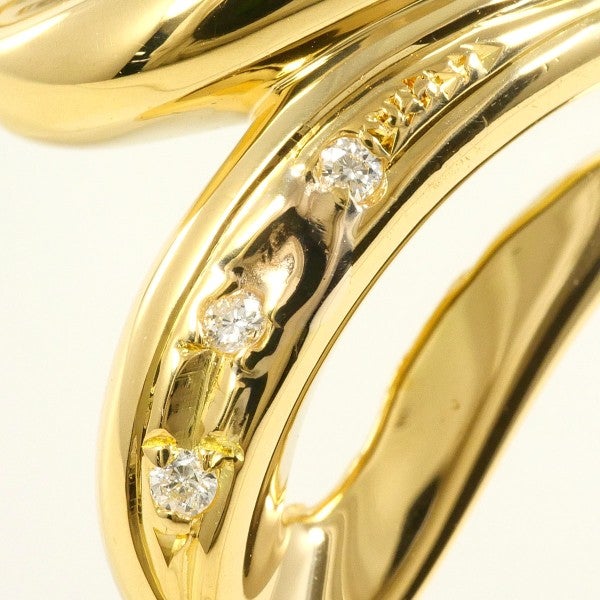 K18イエローゴールドが描く流麗なフォルムに、ラウンドカットの天然ダイヤモンドが繊細な光を添えるリング。立体的なボリュームが指元を洗練させ、タイムレスな美しさを演出します。