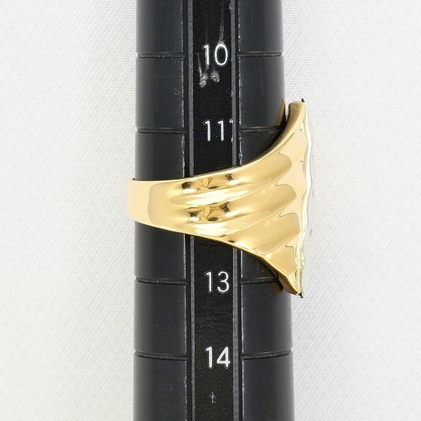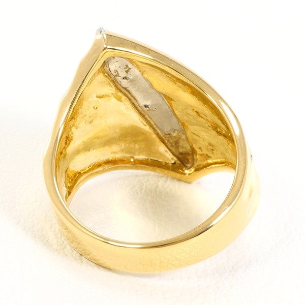 立体感のあるゴールドフォルムに、ライン状に配したプラチナにラウンドブリリアントカットの天然ダイヤモンドが上品な輝きを添えるリング。ボリュームと繊細さを兼ね備えたデザインが手元を美しく引き立て、洗練された印象を与える一品です。