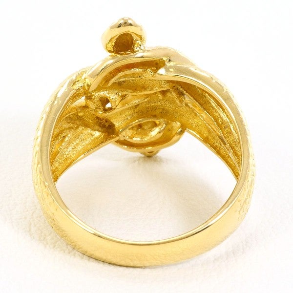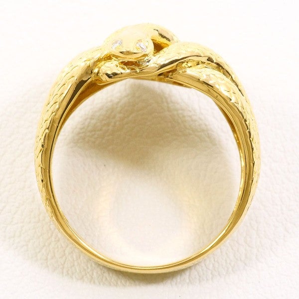 立体的に表現されたへびモチーフをゴールドで精緻に仕立て、ラウンドブリリアントカットの天然ダイヤモンドをさりげなく配したリング。細部まで行き届いた造形と上質な素材感が調和し、手元に洗練された存在感を添える一品です。