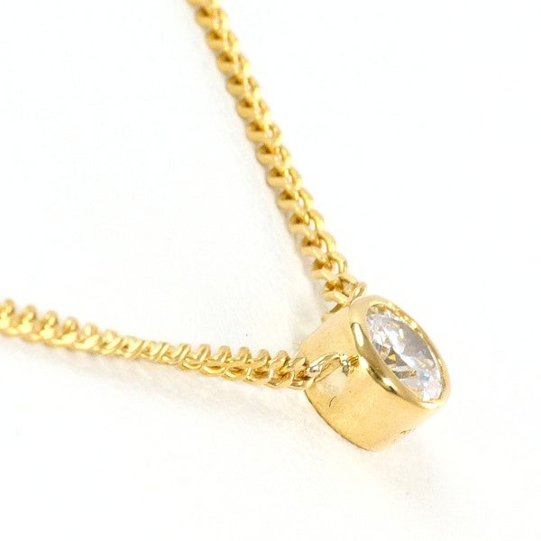 イエローゴールドの艶やかなチェーンに、ラウンドブリリアントカットの天然ダイヤモンドを一粒あしらった上品なネックレス。主張しすぎない洗練されたデザインは、日常の装いからきちんとしたシーンまで自然に馴染み、胸元に確かな高級感と知的な印象を添えるタイムレスなジュエリーです。