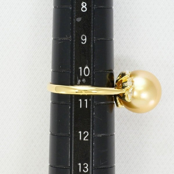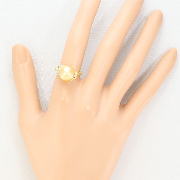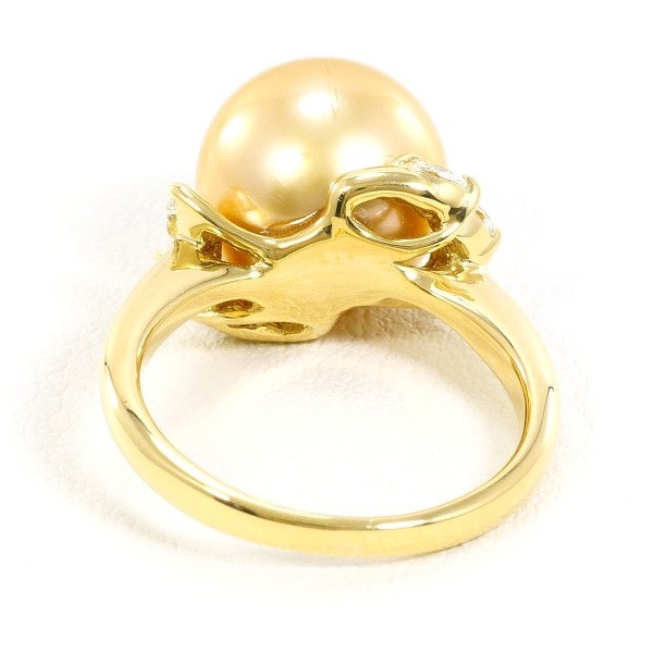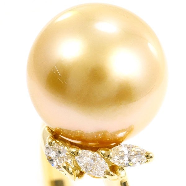 柔らかな光沢を放つ南洋真珠を中心に据え、サイドに天然ダイヤモンドを配したリング。イエローゴールドのアームが真珠の色味に調和し、指元に華やかさと上質感を添える存在感のあるデザインです。