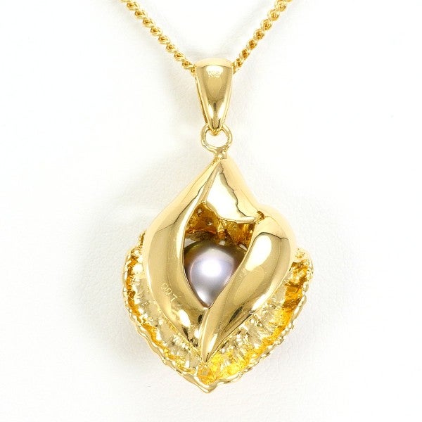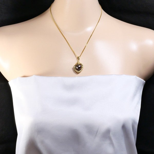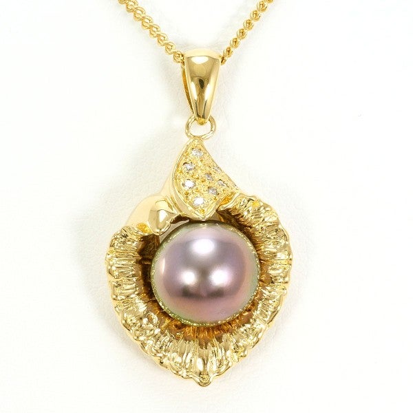 黒蝶真珠の深みある光沢を活かし、イエローゴールドの枠に天然ダイヤモンドを添えたペンダント。立体的なモチーフが程よい存在感を生み、チェーンとの調和が胸元を上質に整えるデザインです。
