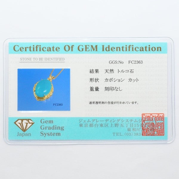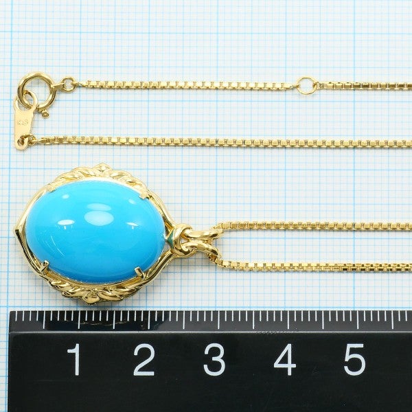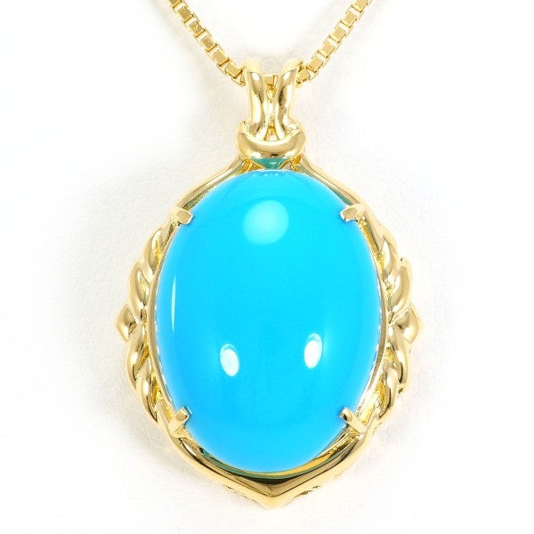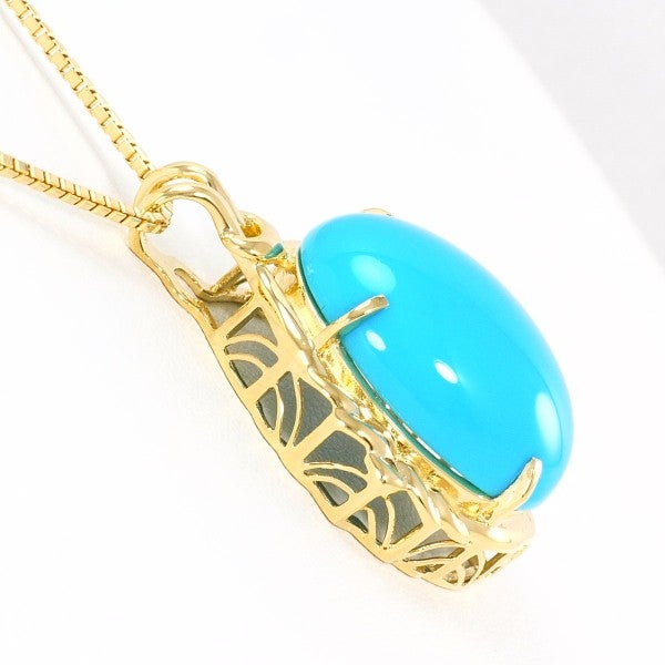 鮮やかなブルーが魅力のターコイズネックレス。ターコイズの存在を感じられる大きさは圧巻です。カボションカットの柔らかな輪郭と、18金イエローゴールドの温かみある輝きが胸元を上品に彩ります。装いに洗練されたアクセントを添えるアイテムです。