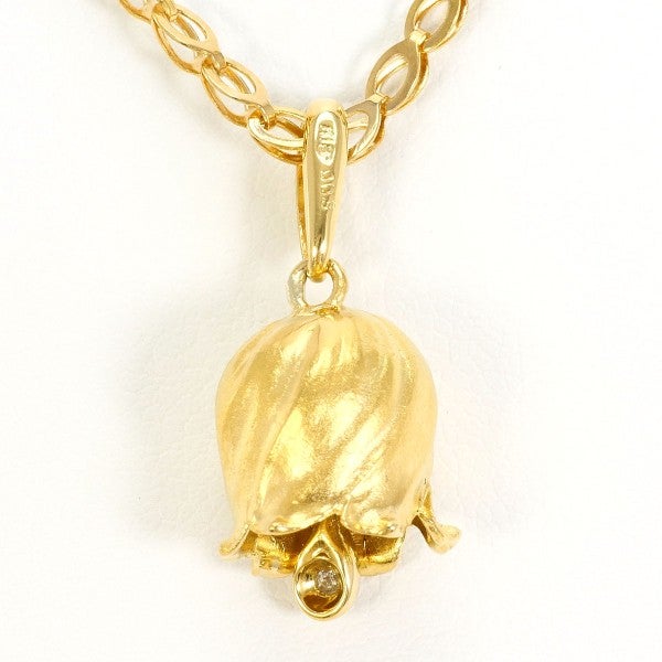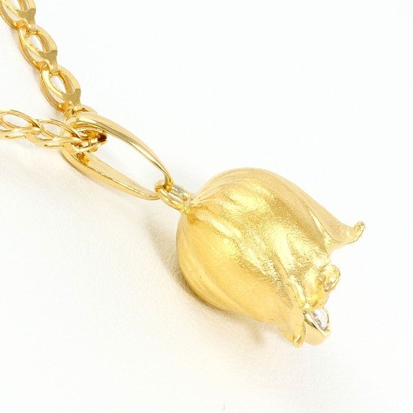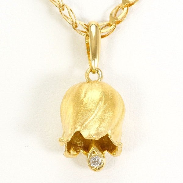 つや消し仕上げのペンダントトップにラウンドブリリアントカットの天然ダイヤモンドをセットしたデザイン。温かみのあるイエローゴールドの色味が、胸元に上質で落ち着いた印象を添えるネックレスです。