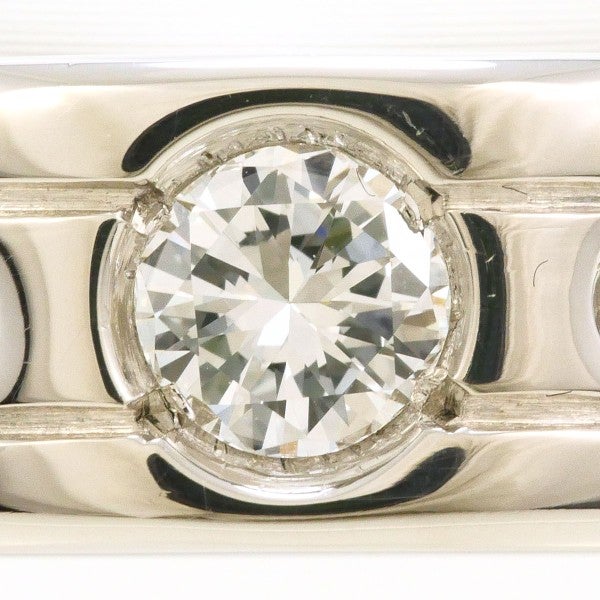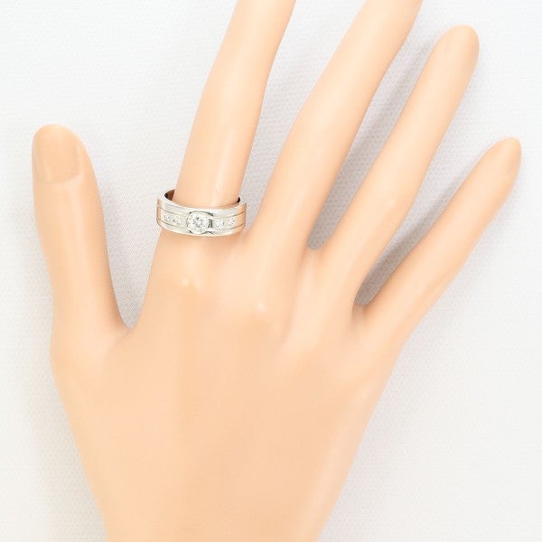 センターダイヤを端正に配し、同一ライン上にメレを並べた洗練のリング。重厚感あるフラットフォルムが指元に静かな存在感をもたらし、スタイルを研ぎ澄ませるモダンなジュエリーで、装いを格上げする一本です。