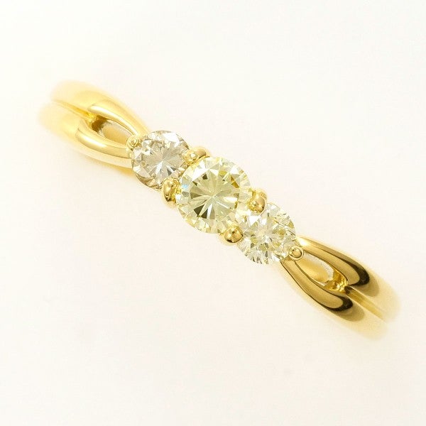 気品あるイエローゴールドに、ラウンドブリリアントカットの天然ダイヤモンドを三石あしらったエレガントなリング。計0.36ctの透明感ある煌めきが指元を凛と照らし、洗練された大人の装いへ格上げし、品よく寄り添うジュエリーです。
