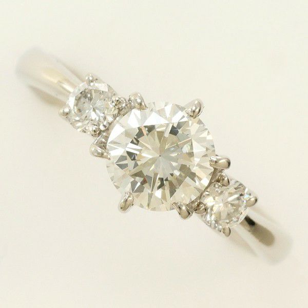 中央に存在感あるダイヤモンドを据え、両脇に配されたサイドストーンが一層の華やぎを添える美しいリングです。透明感のある輝きが手元を明るく見せ、上品でありながら特別感もしっかり感じられる仕上がりです。普段使いからフォーマルまで幅広く活躍し、身に着けるたびに気分を高めてくれる魅力的な一本です。