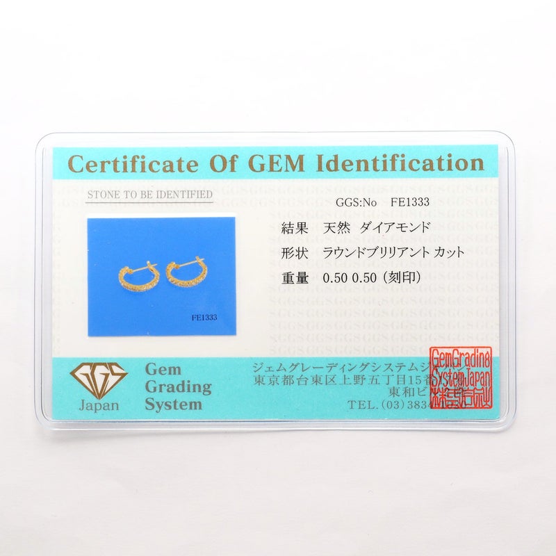 K18 18金 YG イエローゴールド ピアス ダイヤモンド 0.50 カード鑑別書 総重量約2.5g