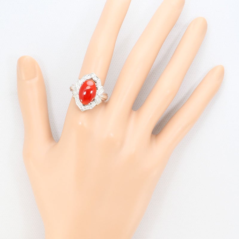 PT900 プラチナ リング・指輪 15号 サンゴ ダイヤモンド 0.28 カード鑑別書 総重量約14.5g