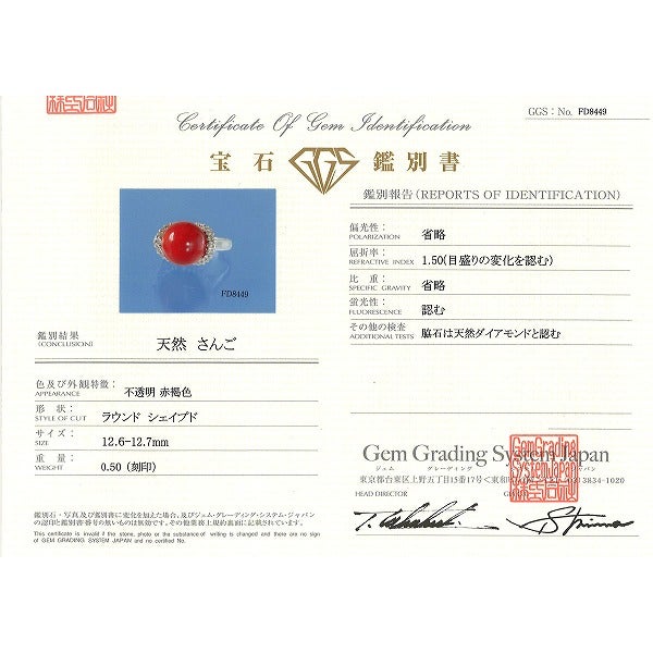 他の画像を見る 全品新品仕上げ済み!激安中古アクセサリー PT900 プラチナ リング・指輪 12号 サンゴ ダイヤモンド 0.50 鑑別書 総重量約11.5g 販売価格 ¥ 298,000 税込 カートに入れる お気に入りに登録する