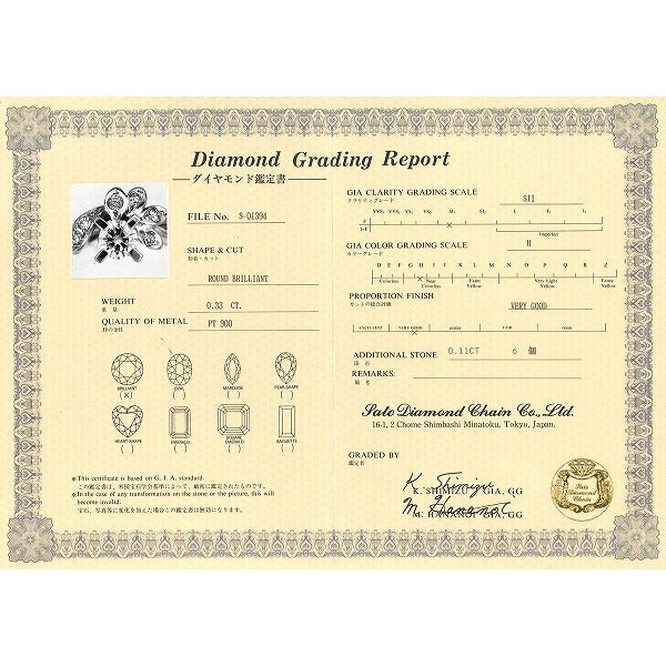 他の画像を見る 全品新品仕上げ済み!激安中古アクセサリー PT900 プラチナ リング・指輪 11号 ダイヤモンド 0.33 ダイヤモンド 0.11 SI1 鑑定書 総重量約4.8g 販売価格 ¥ 178,000 税込 カートに入れる お気に入りに登録する