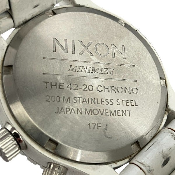 他の画像を見る 激安!中古ブランド時計 【10%OFF】ニクソン 42-20 ホワイト文字盤 クォーツ クロノグラフ 時計 腕時計 メンズ 【中古】 通常価格 ¥ 8,980 販売価格 ¥ 8,082 税込 在庫切れ 再入荷お知らせ お気に入りに登録する